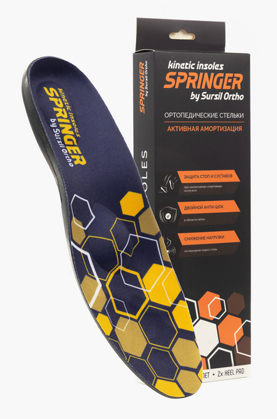 SPRINGER - ортопедические стельки с динамическим каркасом серии KINETIC для амортизации переднего и заднего отдела стопы при интенсивных нагрузках.